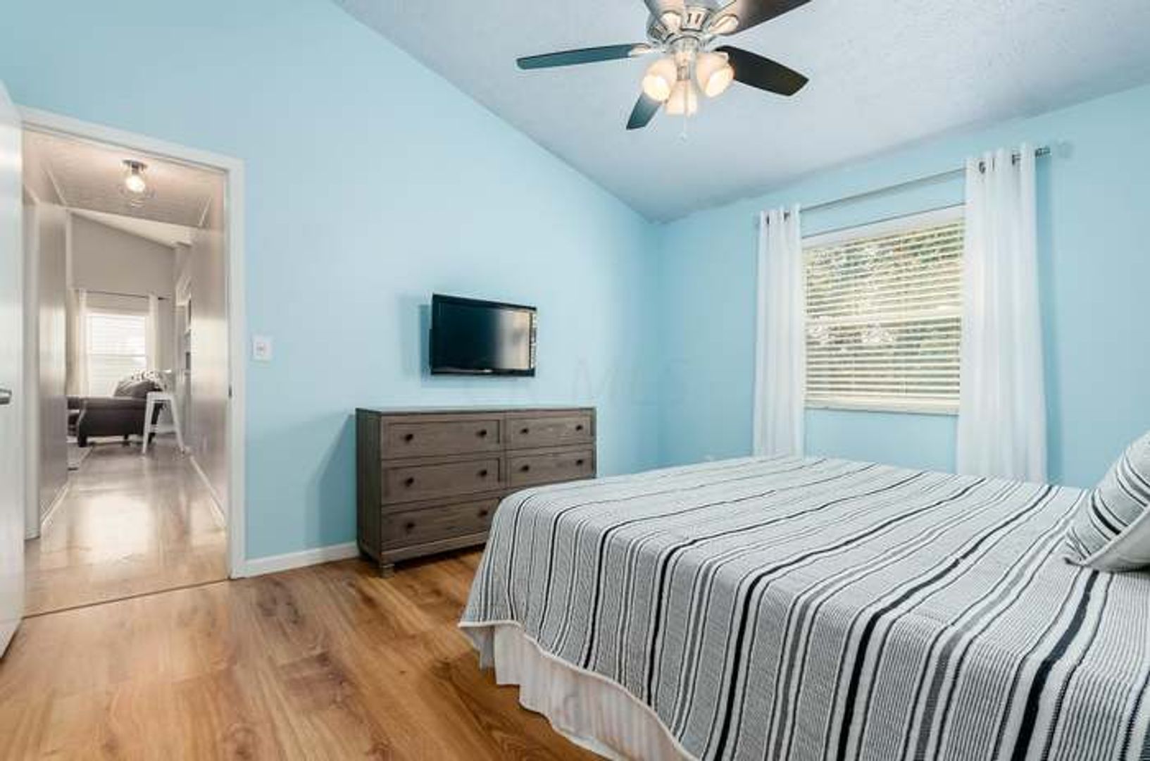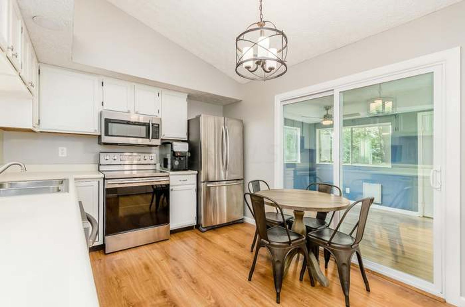 This single family home offers many updates including laminate wood floors throughout the house, eat in kitchen with Stainless steel appliances and white cabinets. Enjoy the vaulted ceilings in the Master bedroom with private bathroom.